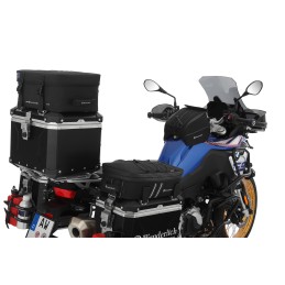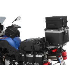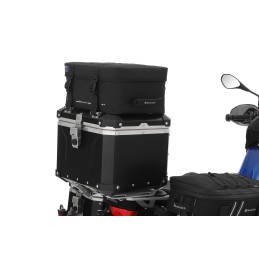 La sacoche d’appoint indéformable pour Topcase offre aux bagages une fixation et une protection sûres et ne flotte pas à vitesses élevées. Elle ne cause donc pas de bruits de flottement dus à la vitesse. Sa particularité est également qu’il ne faut pas de housse étanche supplémentaires pour les sorties sous la pluie.