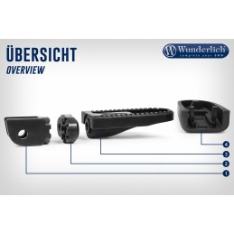 Notre système à crans Vario constitue la solution ultime lorsqu'il est question de repose-pied réglable. Aucun souhait ne reste insatisfait avec une plage de réglages de 100 mm de diamètre. Peu importe que le pied soit plus ou moins grand, qu'il faille augmenter la liberté d'inclinaison ou simplement soulager agréablement l'angle des genoux. Les huit possibilités de réglage sur 360° procurent une énorme flexibilité. Ce gain de confort s'adresse au conducteur comme au passager. Pour les conducteurs sportifs, nous proposons également les crans en forme inclinée. La livraison se fait toujours avec Homologation de type allemande. Toutes les pièces sont en aluminium haute résistance et anodisées argent ou noir.