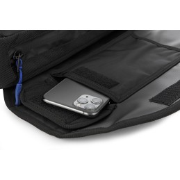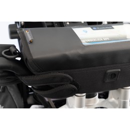 L'espace complet restant disponible peut ainsi être utilisé. Rabat facile à ouvrir. La grande poche principale se ferme avec une fermeture éclair hydrofuge et insensible à l'encrassement . Les portables, et autres, sont ainsi chargeables sur route, la poche dispose d'une entrée de câble E-Connect résistante à l'eau. Des renforts aménagés, une doublure d'absorption des vibrations et la structure complexe en deux ou trois couches assurent la stabilité dans toutes les conditions.