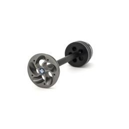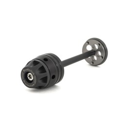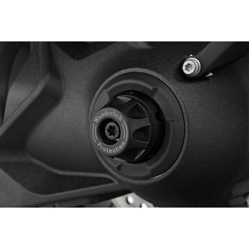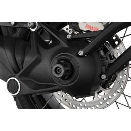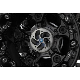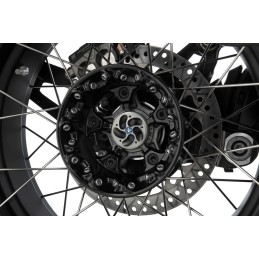 Ce coussinet de protection DOUBLESHOCK, déjà éprouvé dans le sport automobile, maintient la route ou le sol à une distance de sécurité du bras oscillant et réduit le risque de dommages coûteux à la transmission de l'essieu arrière sur le côté gauche. Le cache-moyeu dynamique TORNADO, fabriqué en aluminium de haute qualité, complète la combinaison et ferme proprement le tunnel du moyeu à droite, devenant un point de mire intégré.