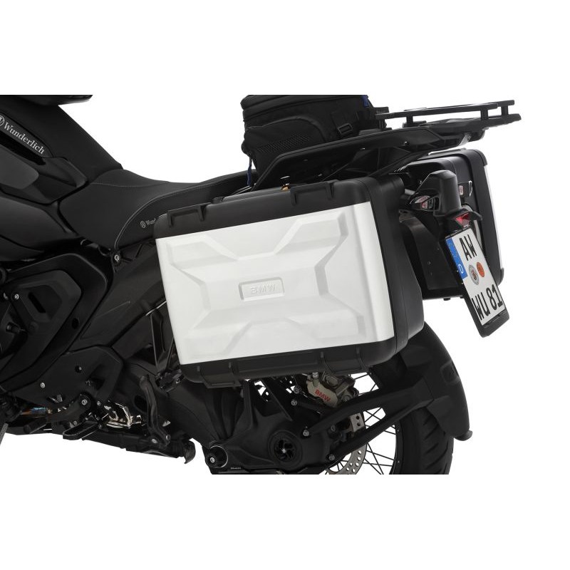 Le montage, le verrouillage et le chargement des valises Vario mentionnées ci-dessus restent inchangés. Le kit d’adaptateurs est spécifiquement conçu pour une utilisation sur route et non pour une utilisation hors-piste. Fabriqué avec précision, de haute qualité, en noir discret, le kit est facile à installer. Nous proposons également un kit d’adaptateurs pour les top-cases Vario, compatible avec ce kit (#13640-002).