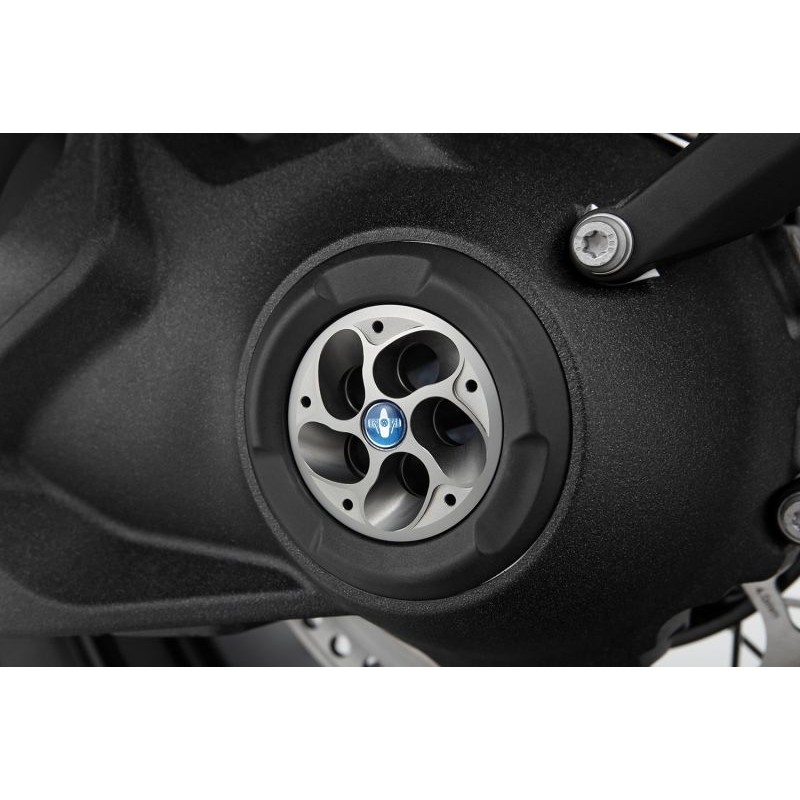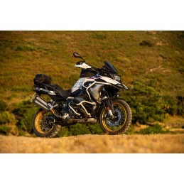 Les renforts Wunderlich complètent la barre de protection du moteur d'origine et offrent une protection supplémentaire solide pour les flancs de la BMW R 1300 GS et GS Adventure