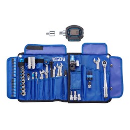 Ce set d'outils ProPack est spécialement conçu pour les motos BMW. Il est de qualité supérieure, destiné à l'entretien, la maintenance et les réparations professionnels en déplacement ou dans le garage chez soi. Il contient, en plus du set d'outils BMW complet et compact de 71 pièces (#21361-300), l'adaptateur de couple numérique 3/8" (#21361-200), qui transforme chaque clé à cliquet en une clé dynamométrique précise avec une large plage d'utilisation de 4-203 Nm pouvant être orientée dans un sens ou dans l'autre. Avec écran pivotant dont l'affichage de l'écran peut être pivoté de 180°. Un signal sonore croissant facilite le réglage précis du couple souhaité.