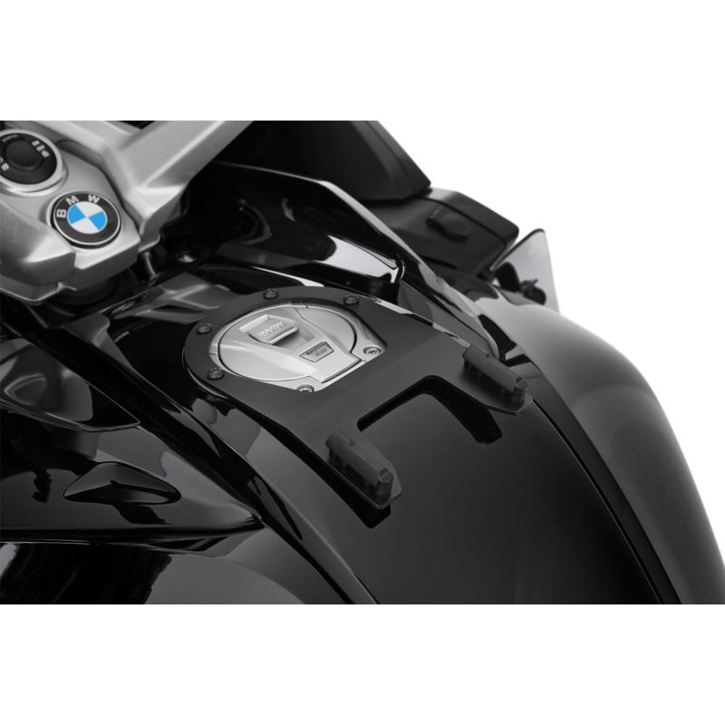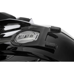 L'anneau de réservoir spécifique au modèle constitue une base solide pour le verrouillage mécanique et sécurisé des sacoches de réservoir CLICK BAG. Pour la fixation, la sacoche CLICK BAG doit être insérée dans les deux guides de l'anneau de réservoir par le haut jusqu'au verrouillage automatique de la serrure. Une sangle attachée à la sacoche de réservoir permet de débloquer le dispositif d'un seul coup. La sacoche de réservoir peut ainsi être retirée en un rien de temps, par exemple pour faire le plein.