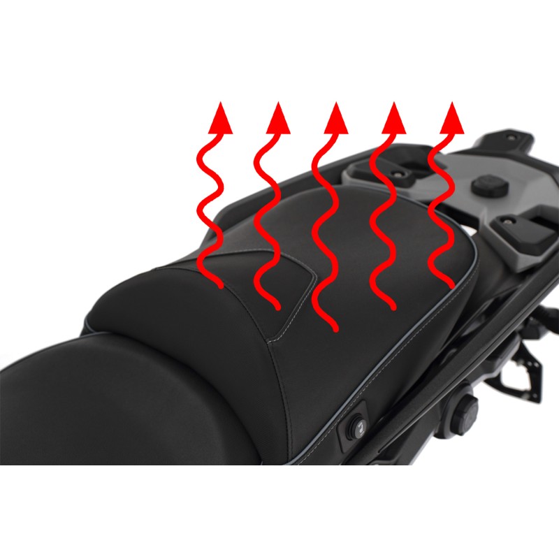 Notre selle passager, unique sur le marché, offre un niveau de confort élevé comparable aux selles conducteur haut de gamme actuelles, tant en matière d’ergonomie, de rembourrage que de dimensions. Le design soigné de la housse, la couture élaborée et le travail artisanal de nos selliers confèrent à cette selle un aspect harmonieux qui s’intègre parfaitement au design de la BMW R 1300 GS, malgré une largeur accrue de 70 mm par rapport à la selle d'origine. La surface d’assise plus grande réduit la pression, procurant ainsi un confort accru pour les fessiers.