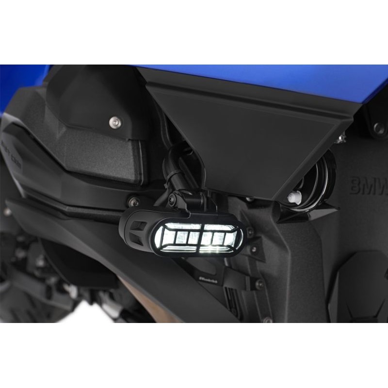 Grille de protection Wunderlich : Protection optimale pour les feux additionnels à LED d’origine de la BMW R 1300 RT contre les projections de pierres et les débris soulevés. Même sur autoroute, une pierre projetée peut rapidement endommager un feu additionnel coûteux – surtout lorsqu’il s’agit de technologie LED de dernière génération. La grille de protection Wunderlich réduit donc le risque que la technologie LED soit directement endommagée par les projections.
