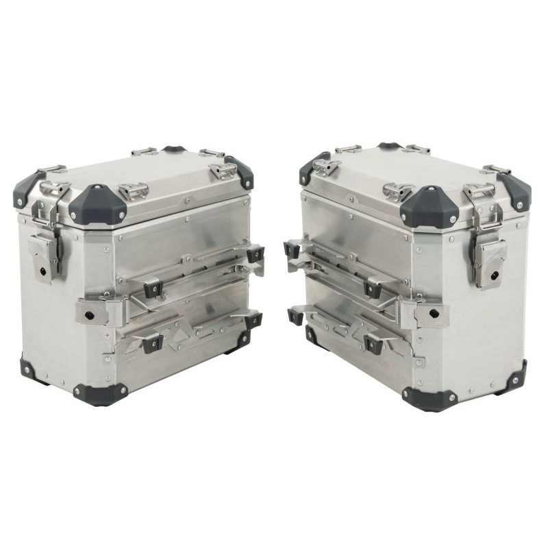Que ce soit pour un trajet sur l’autoroute, vers le Cap Nord ou à travers le désert : ces valises en aluminium robustes, légères et élégantes EXTREME vous accompagneront dans les bons comme dans les mauvais moments ! Le fixer au porte-avions est simple grâce au système de déverrouillage rapide. Ils sont absolument à l’épreuve de la poussière et étanches grâce à leur système d’étanchéité spécial. L’utilisation constante uniquement de matériaux de haute qualité garantit la durabilité de notre système de bagages « EXTRÊME ». Cela est dû à la feuille d’aluminium traitée de 1,5 mm avec perlage stabilisateur (optimisé en poids, mais robuste), aux raccords en acier inoxydable, à la protection polyvalente remplaçable à tous les coins et aux capuchons protecteurs des serrures.