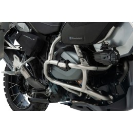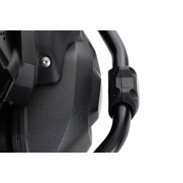 Il est solidement fixé à des tubes de 25 mm via une pince quadruple stable (moteur, carénage ou barre de protection du réservoir). De plus, un dispositif mécanique anti-rotation optionnel est inclus dans le champ d’application de la distribution.