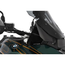 Ces déflecteurs de vent augmentent considérablement le confort de conduite et soutiennent un style de conduite détendu – pas seulement sur de longues distances. Les deux servent à la sécurité de conduite. Les déflecteurs sont des ajouts efficaces et aérodynamiquement intégrés à la bulle d'origine ou à nos pare-brise MARATHON et TOURING SPORT développés pour la R 1300 GS. Les déflecteurs de vent sont disposés à droite et à gauche dans la partie inférieure de la bulle. Ils dirigent le flux d'air de manière à ce que les turbulences puissent être sensiblement atténuées, réduites ou complètement éliminées.