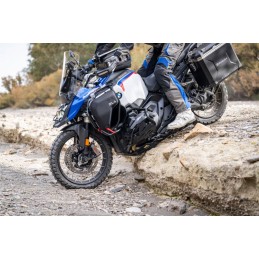 Les barres supplémentaires ULTIMATE plus de Wunderlich complètent la barre de protection de réservoir ULTIMATE et offrent une protection supplémentaire parfaitement intégrée pour les flancs de la BMW R 1300 GS Adventure.
