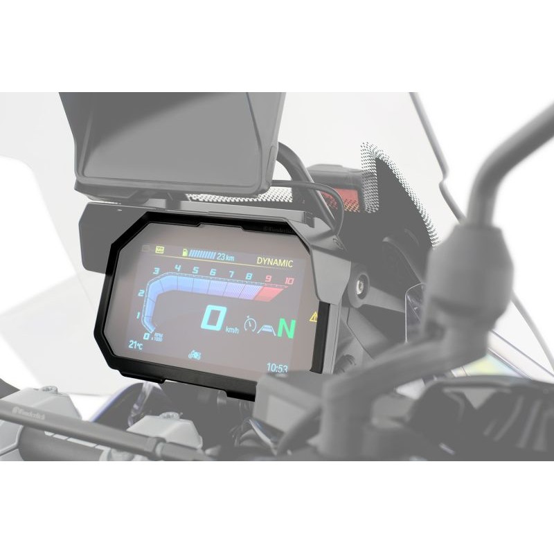 La protection antivol TFT Wunderlich s’installe facilement. La lisibilité de l’écran n’est pas altérée. Prévue pour le montage du pare-soleil Wunderlich spécifique, en complément de la protection antivol. Avec logo de la marque Wunderlich.