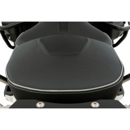 L’« affaissement » du rembourrage est efficacement évité grâce à une conception bien pensée, et la pression d’assise est répartie uniformément sur une plus grande surface, ce qui réduit sensiblement la pression spécifique au niveau du postérieur. Agréable ! La forme ergonomique de la mousse spéciale soulage en outre le coccyx sensible à la pression. Elles offrent un maintien parfait et un contrôle actif et sûr lors d’une conduite soutenue, notamment au freinage : qui ne connaît pas cette situation où le passager pousse soudainement par l’arrière lors d’un freinage appuyé, vous obligeant à vous appuyer brusquement tout en devant continuer à diriger dans une situation potentiellement délicate. Avec le contour de soutien spécialement développé par Wunderlich, ces moments de frayeur au freinage appartiennent au passé. Le contour 3D innovant et ergonomique veille également à ce que les points de pression à l’intérieur des cuisses à l’arrêt au feu rouge appartiennent eux aussi au passé.