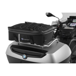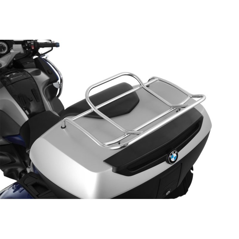 Notre galerie TOUR est un ajout élégant et pratique au top case BMW d’origine, conçue exclusivement pour le modèle grand format. On n’a jamais trop de place pour les bagages en voyage. C’est pourquoi de nombreux motards transportent des objets supplémentaires – ou ceux qu’ils veulent garder accessibles ou à l’extérieur (comme un imperméable mouillé ou des gants) – directement sur le top case. Nous avons donc conçu la galerie TOUR. Sa structure tubulaire permet de fixer solidement les bagages. Utilisée comme poignée, elle facilite la manipulation du top case. Elle sert également de point d’appui pour le passager lors des montées ou descentes. Même sans bagage, sa forme et sa finition haut de gamme en font un accessoire esthétique qui sublime le design de votre BMW.